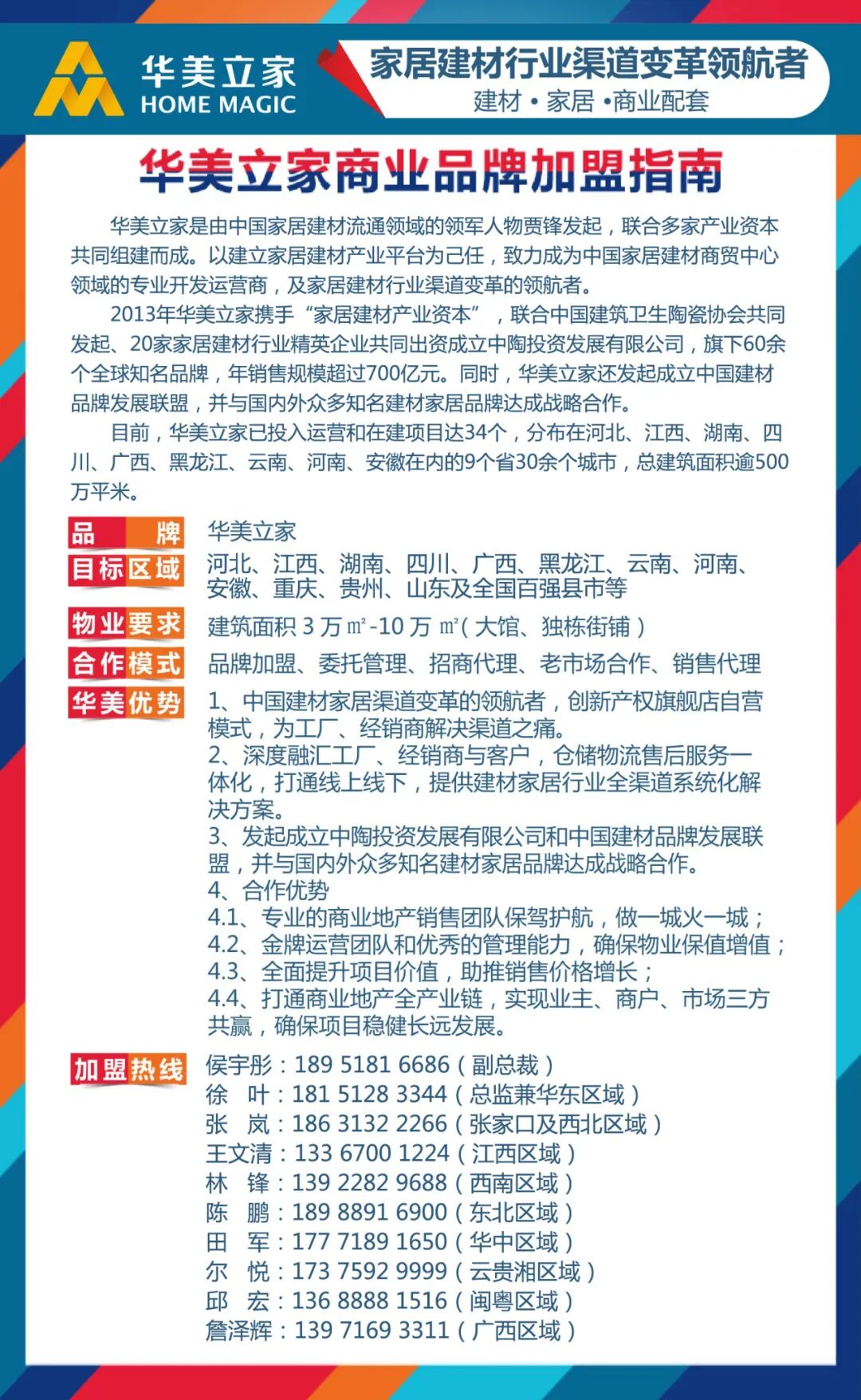 華美立家專注家居建材行業(yè)運營管理20余載,具有豐富的商業(yè)資源和強大的運營管理能力。秉持誠信、和諧、共贏、分享的經(jīng)營理念,為商戶打造優(yōu)質(zhì)穩(wěn)定的商業(yè)平臺,降低運營成本;為消費者提供優(yōu)質(zhì)舒心的購物環(huán)境,減低消費成本;不斷提升客戶滿意度和行業(yè)誠信度,謀求社會對家居建材行業(yè)的廣泛認可和尊重,實現(xiàn)成就美好家居生活的企業(yè)使命。